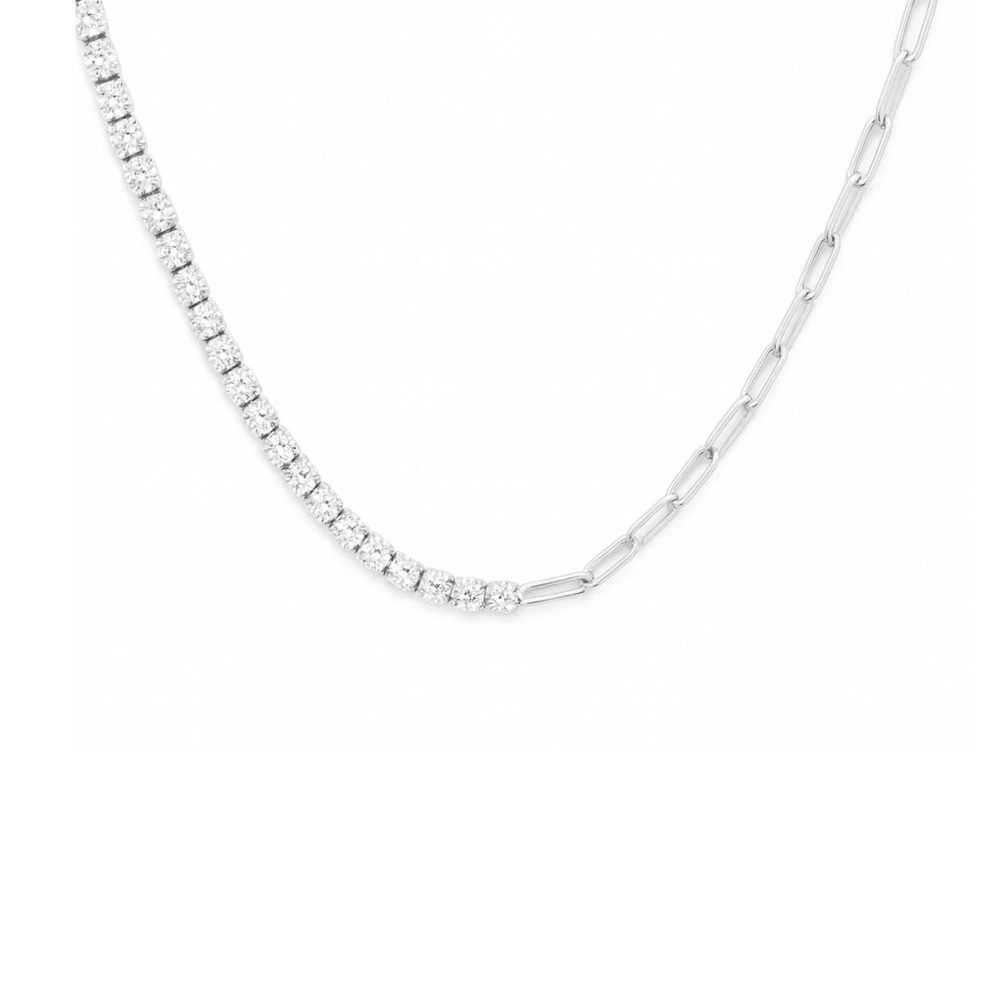 Colar Elos Clip e Pedra - Banhado em Prata 925