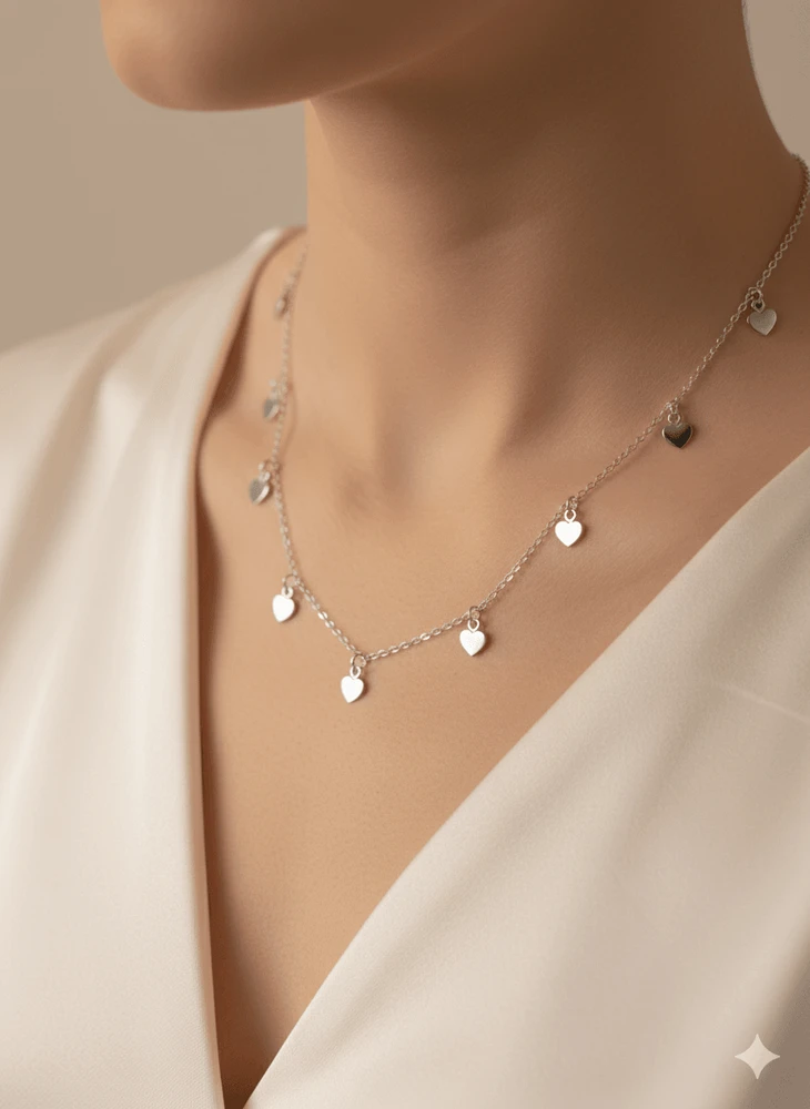 O Colar Feminino com Corações Delicados é uma peça romântica e atemporal, perfeita para quem ama acessórios sutis e cheios de significado. Confeccionado com corrente fina em metal, o colar possui pequenos pingentes de coração distribuídos ao longo da corrente, criando um visual leve, elegante e muito feminino.