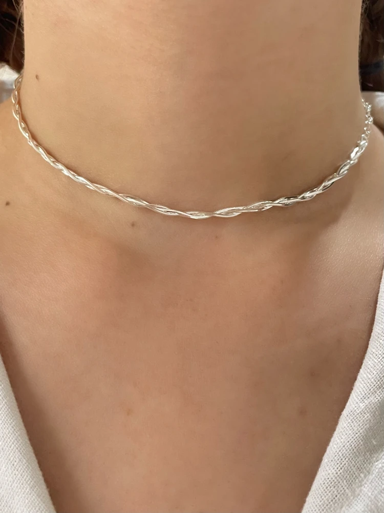 O Colar Folheado Elo Torcido Prata é um acessório elegante e atemporal, ideal para quem ama um toque de brilho discreto no visual.