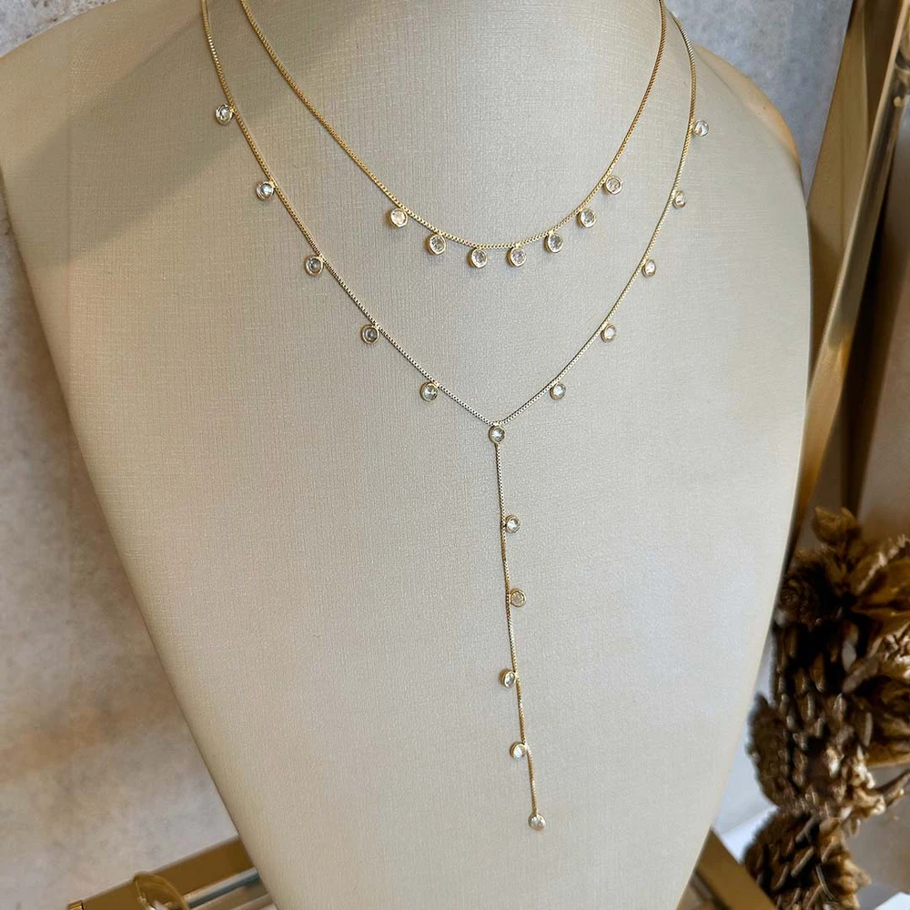 Colar Gravatinha Pontos de Luz Banhado a Ouro 18K