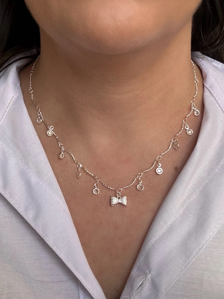 Não perca mais tempo e adquira já o seu Colar Laço Com Gotinhas De Luz! Com ele, você estará sempre pronta para arrasar e se destacar em qualquer lugar.