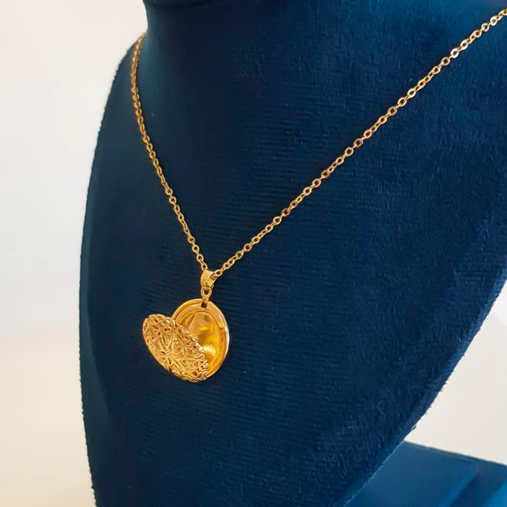 COLAR RELICÁRIO REDONDO BANHADO 8K