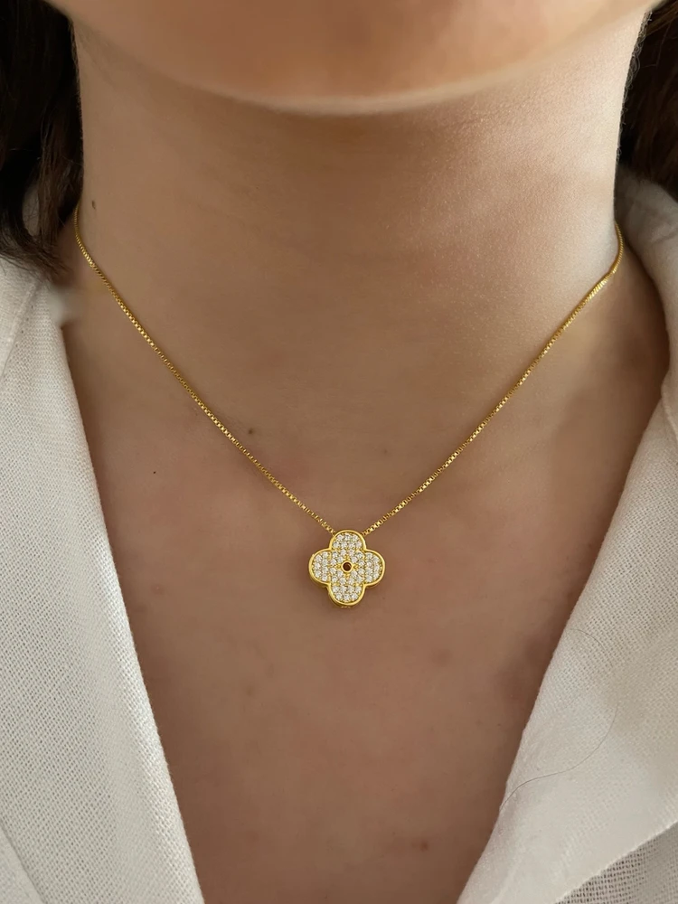 Colar Trevo Pingente Com Strass: A sorte sempre ao seu lado