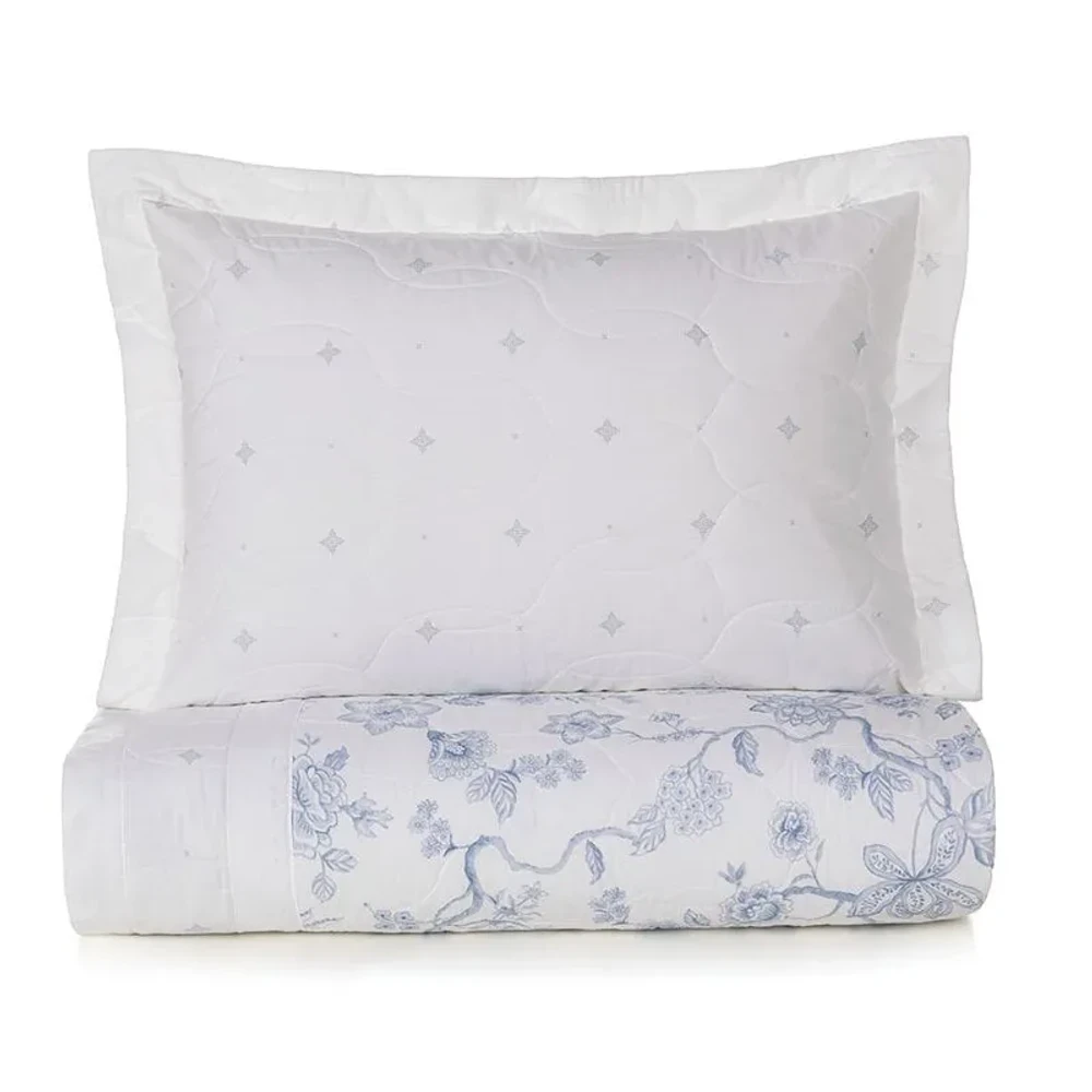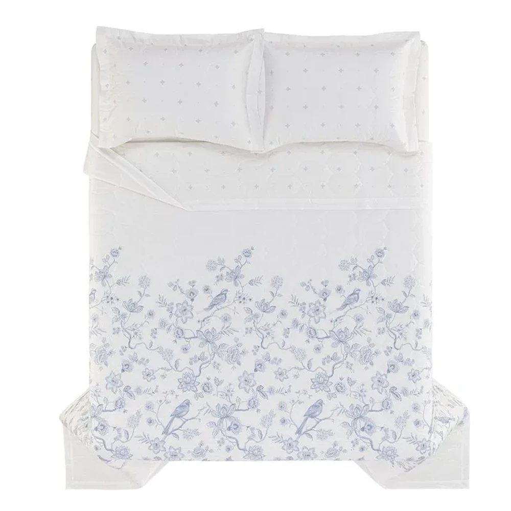 Colcha casal Dora 200 fios azul Karsten