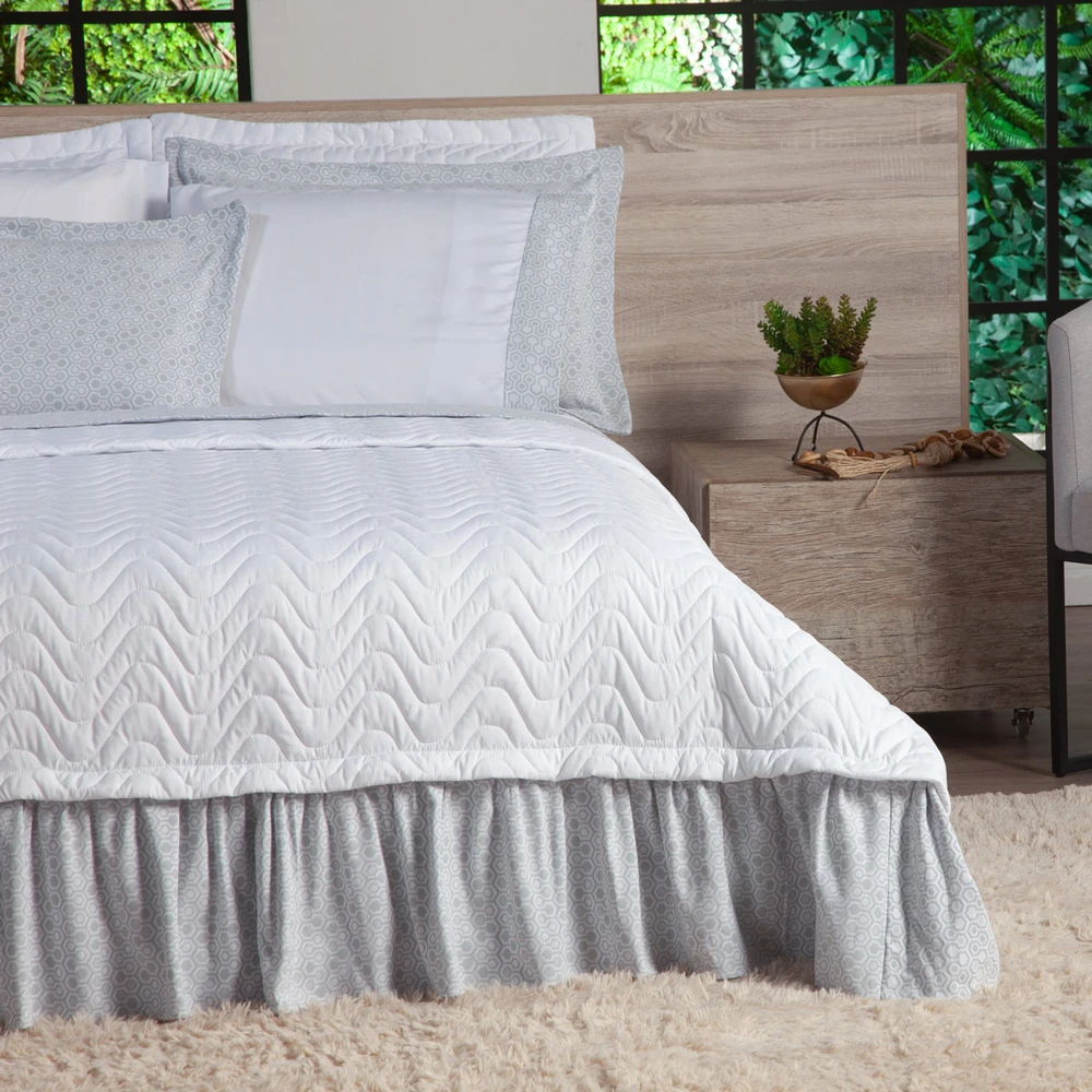 Babado e Porta Travesseiro Estampado: Jacquard 58% Algodão / 42% Poliéster