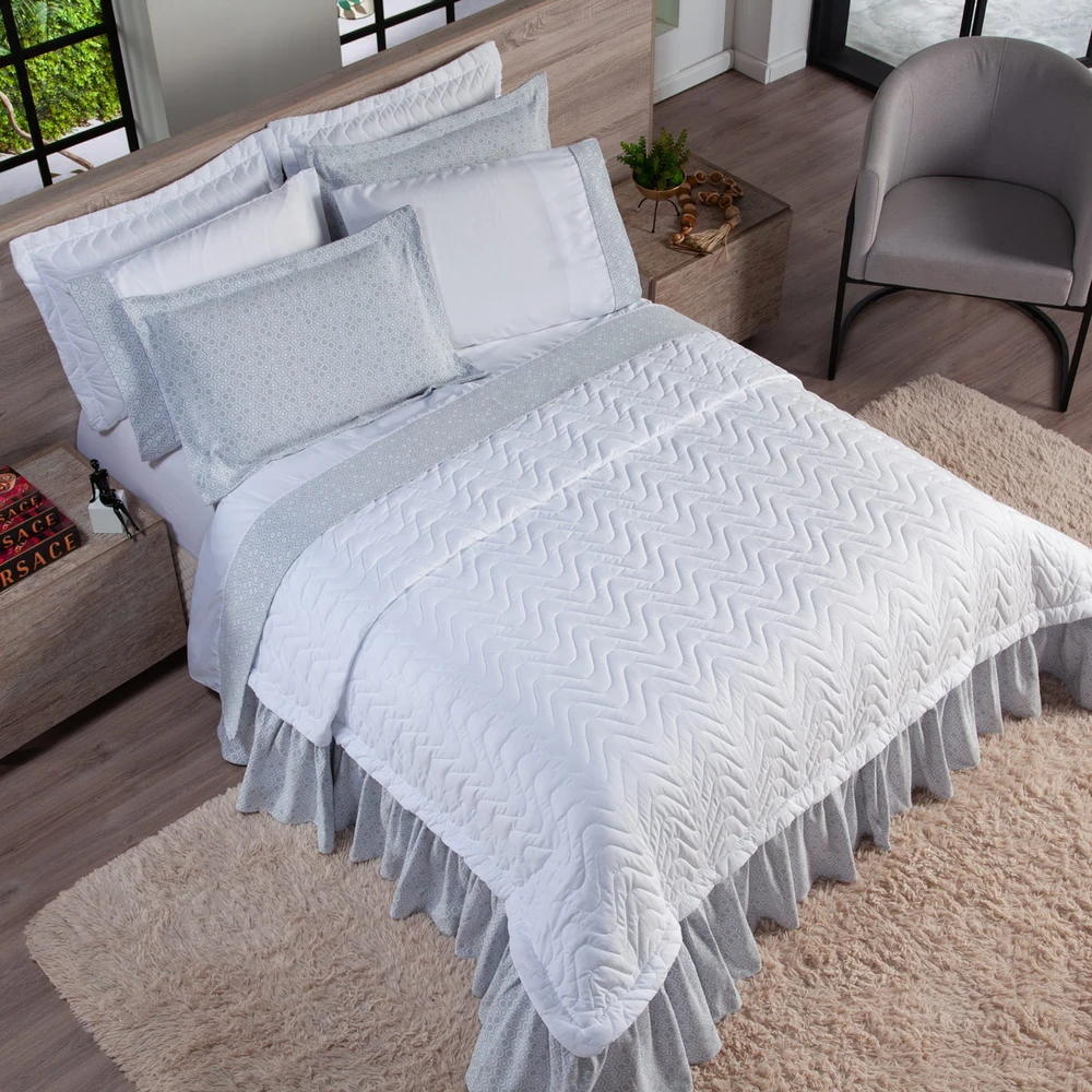Babado e Porta Travesseiro Estampado: Jacquard 58% Algodão / 42% Poliéster