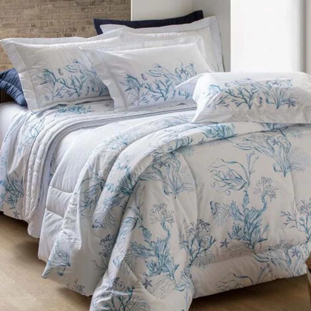 Modo de uso: Ajustar a colcha sobre a cama e posicionar os porta-travesseiros correspondentes.