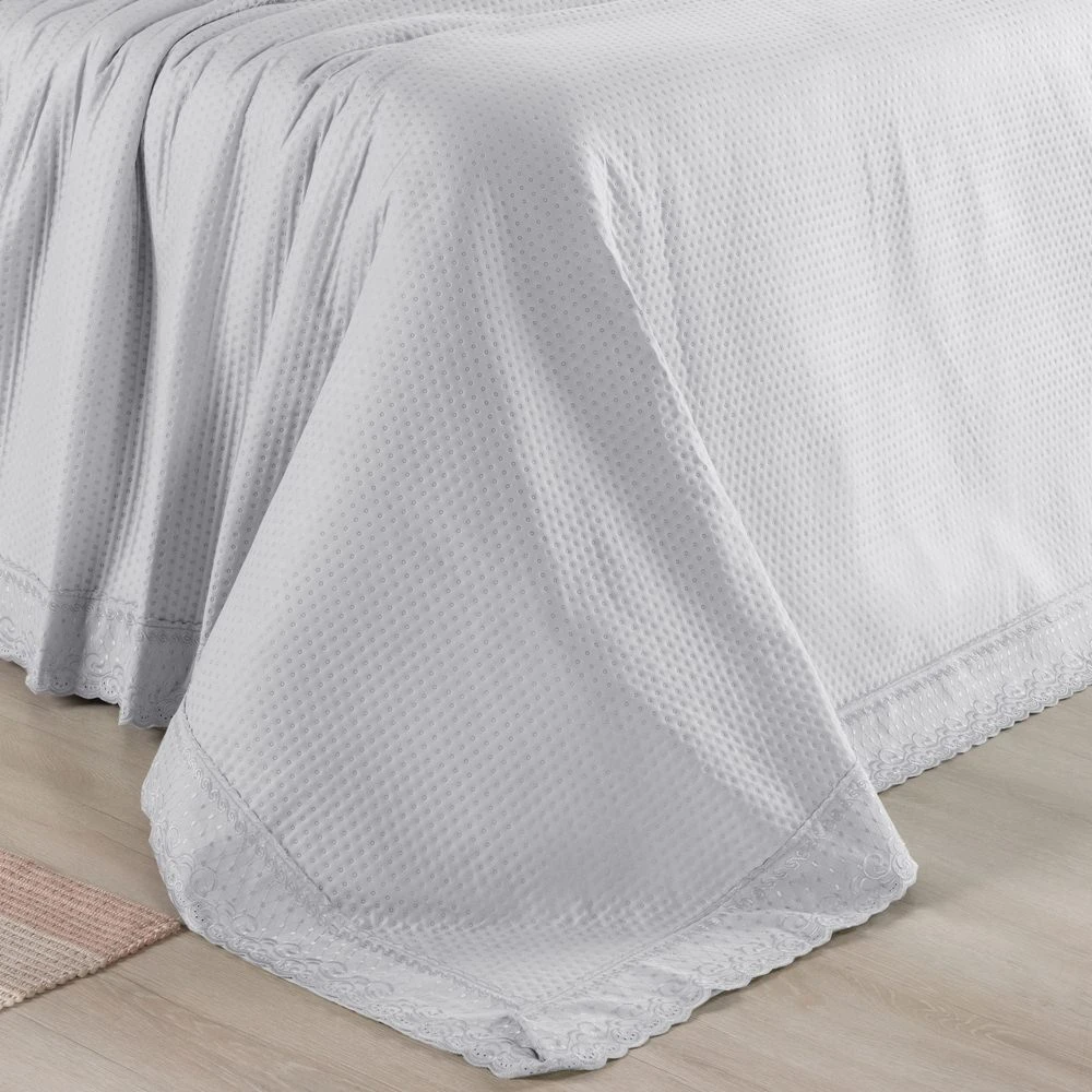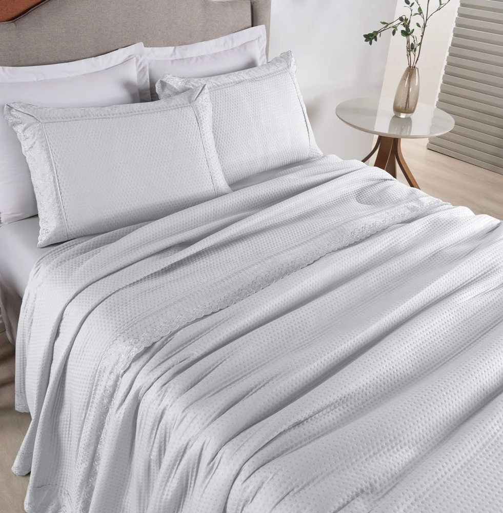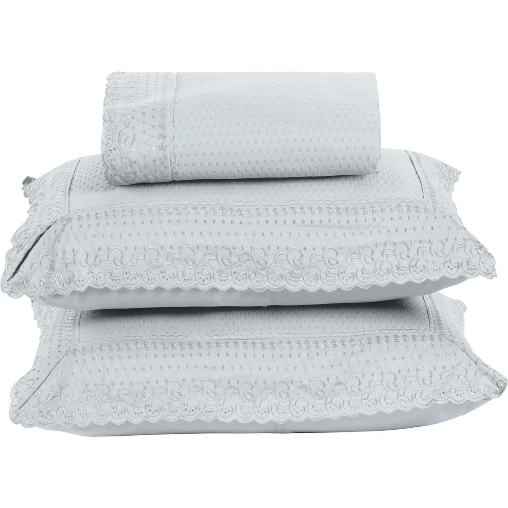 Colcha Queen Home Paris com Bordado Inglês Micropercal 300 Fios Toque de Algodão 3 Peças - Branco - 100% Poliéster