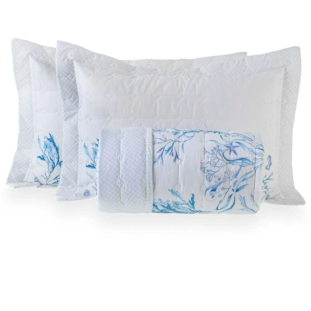 Modo de uso: Ajustar a colcha sobre a cama e posicionar o porta-travesseiro correspondente.