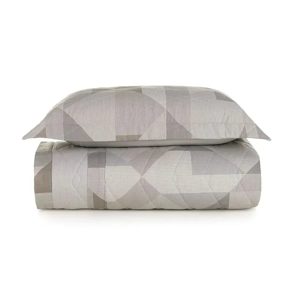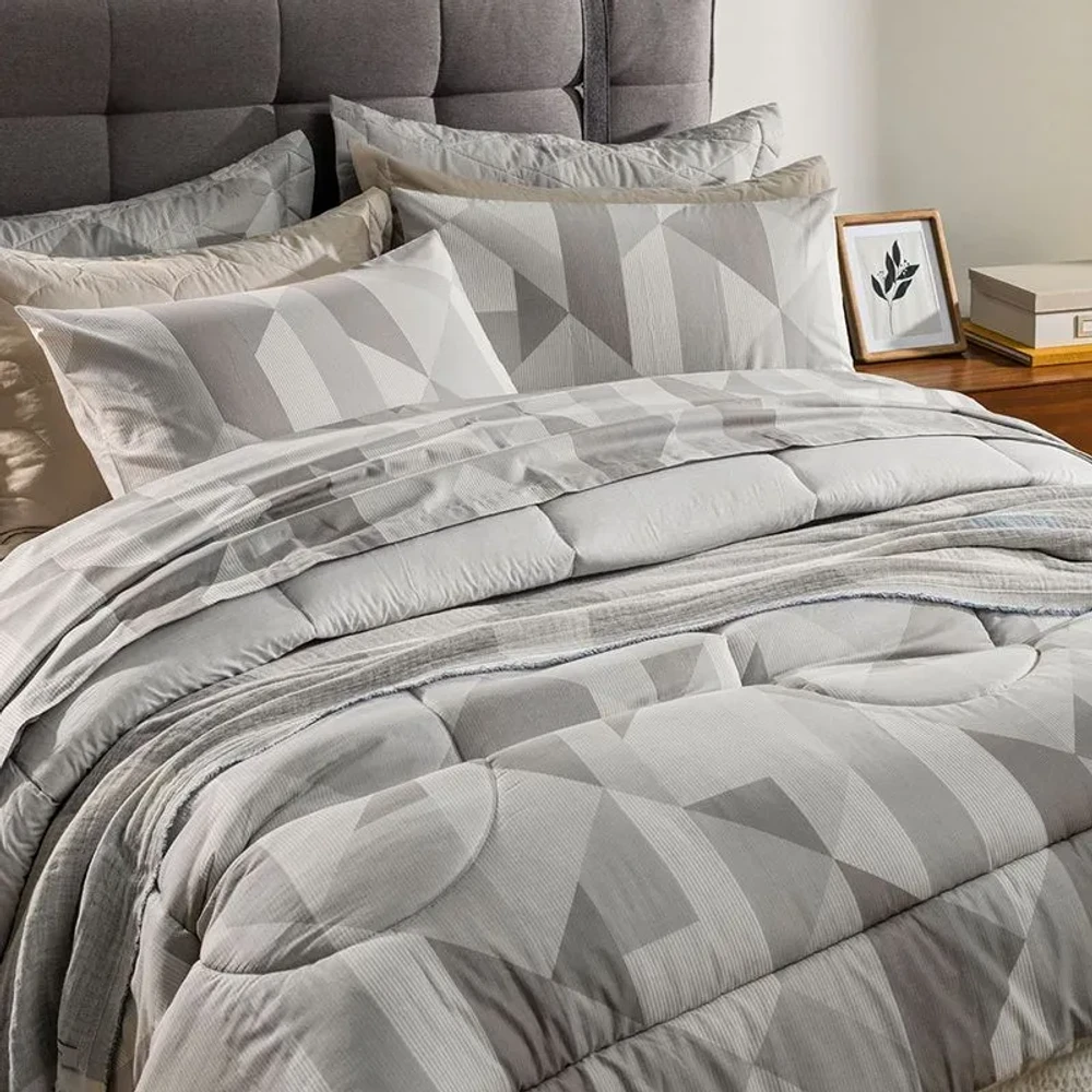 A colcha Blasius solteiro Karsten combina conforto, qualidade e estilo para o quarto. Confeccionada em 100% algodão com 160 fios, oferece toque encorpado, altamente respirável, hipoalergênico e resistente a bolinhas, garantindo noites confortáveis e durabilidade. O modelo dupla face com cantos quadrados permite variar o visual da cama, enquanto o porta-travesseiro com 3 abas de 5 cm adiciona acabamento elegante. A combinação das cores cinza e azul traz serenidade e harmoniza facilmente com outros itens da linha.