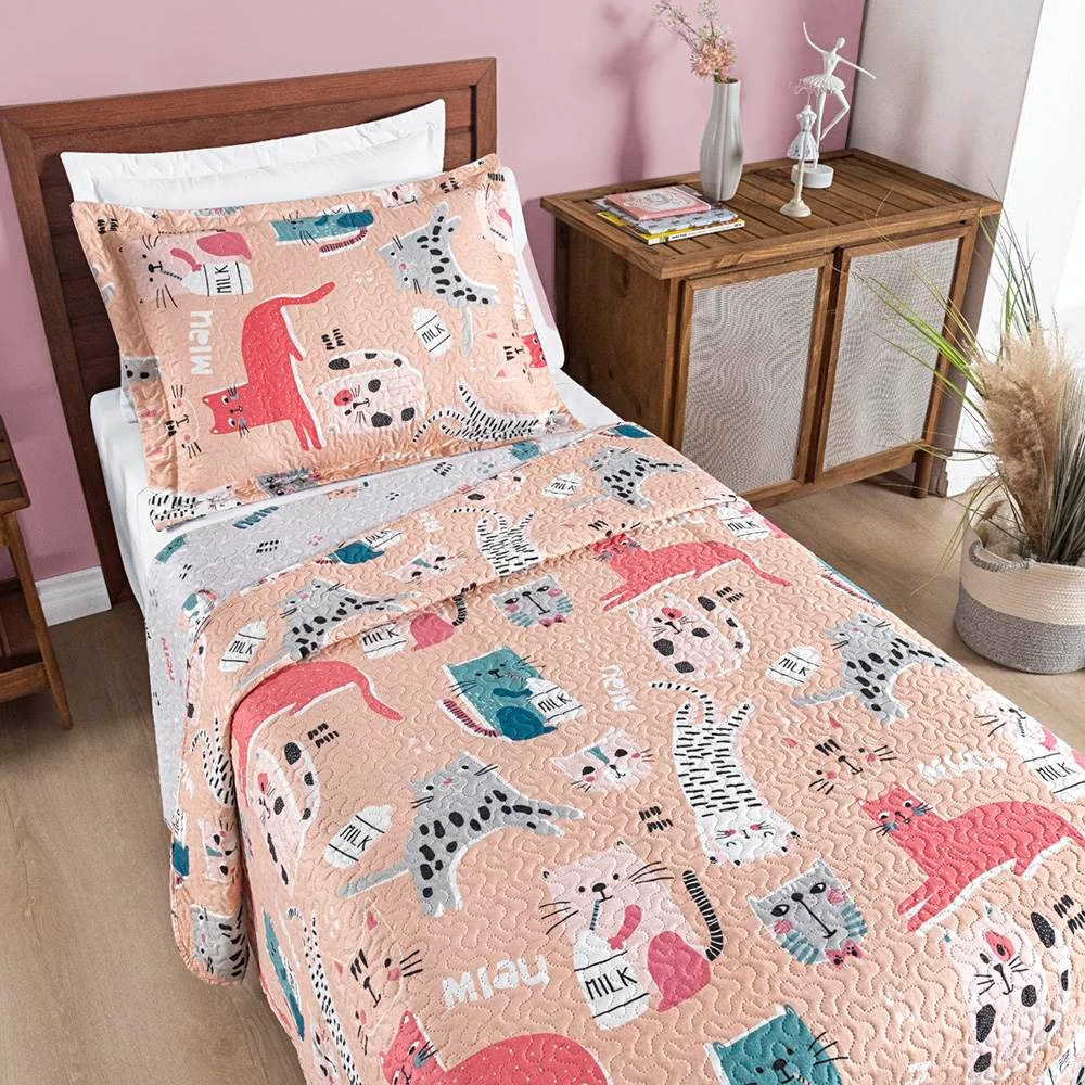 Colcha Solteiro Bouti Kids Dupla Face Estampado 2 Peças - Gatinha