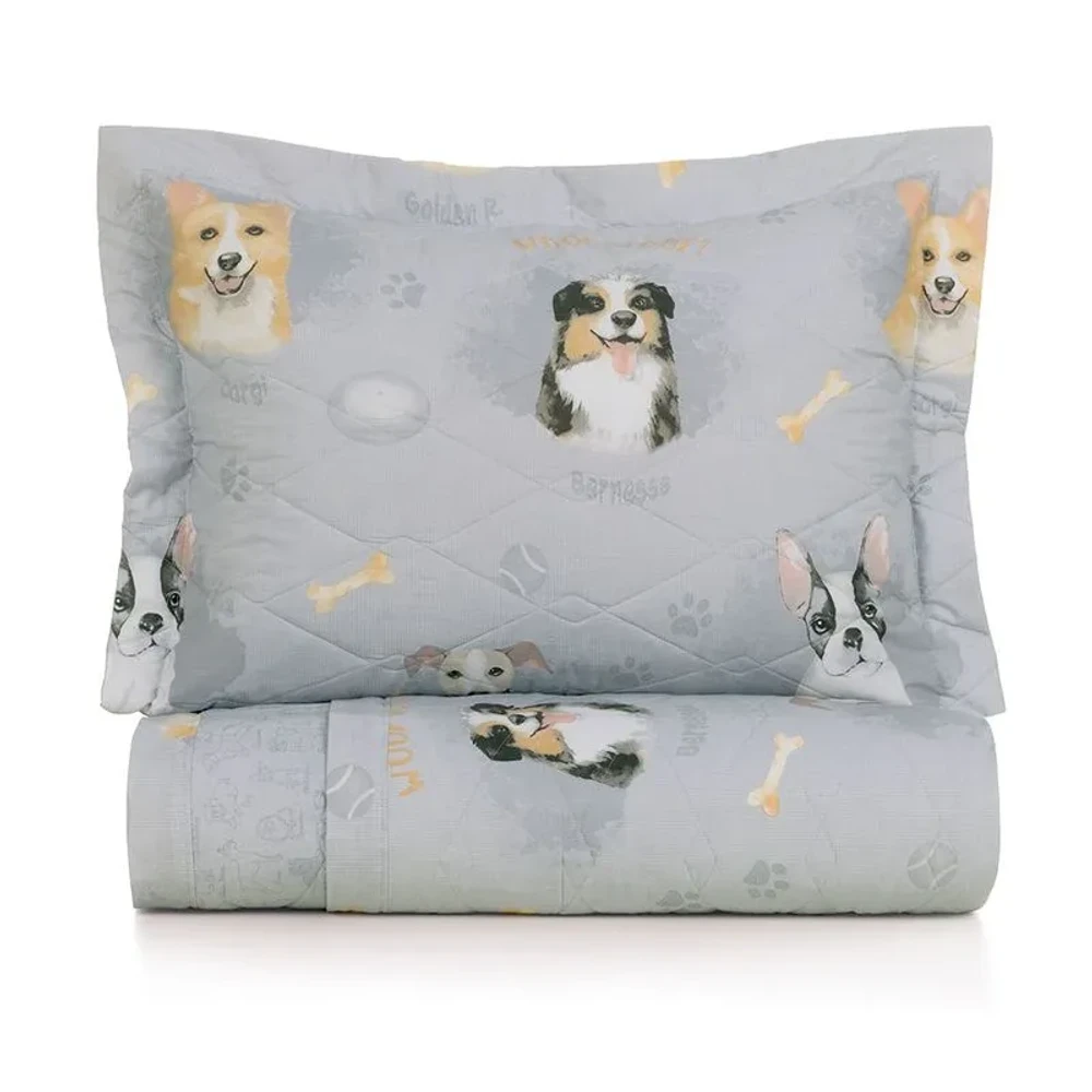 COLCHA SOLTEIRO DOG 200 FIOS AZUL KARSTEN