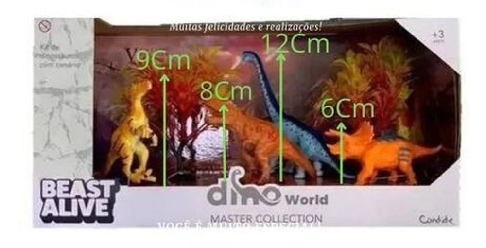 Os dinossauros podem medir de 12 a 6 cm de altura.