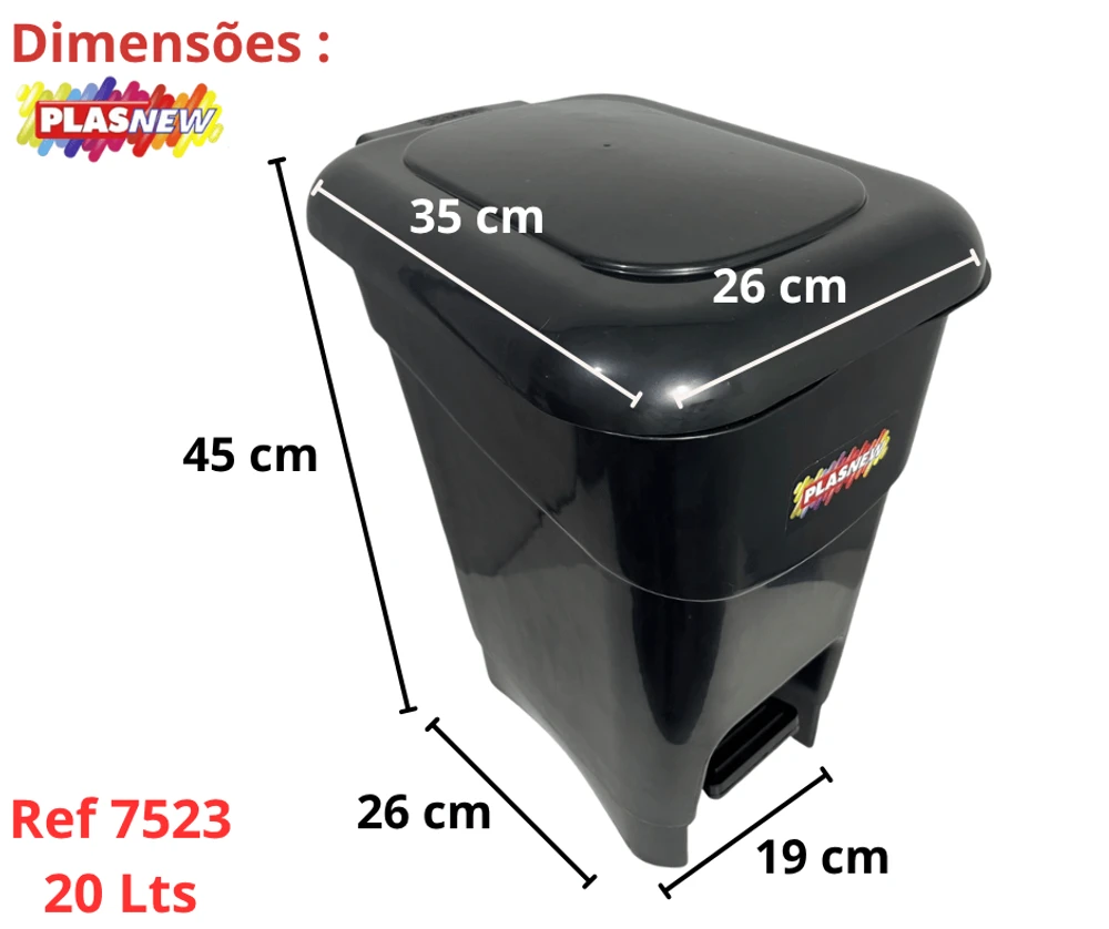 A Lixeira Plástica Quadrada com Pedal 20 Litros Preto é utilizada para dispensar seu lixo da cozinha, banheiro, ou dejetos com facilidade sem ter contato com o recipiente evitando o risco de contaminação, sendo própria também para consultórios, farmácias, hospitais.