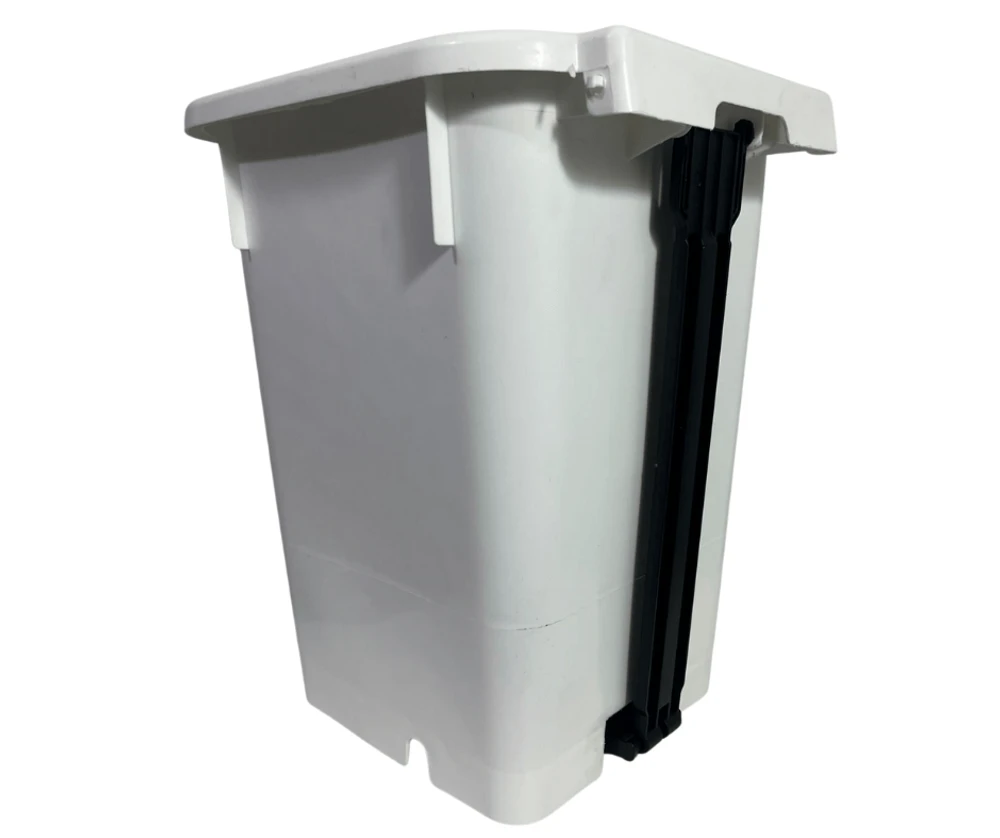 Sua tampa com sistema de abertura e fechamento através de pedal promove a vedação do coletor evitando a dispersão de odores e a entrada de insetos, além de evitar os riscos de contaminação.