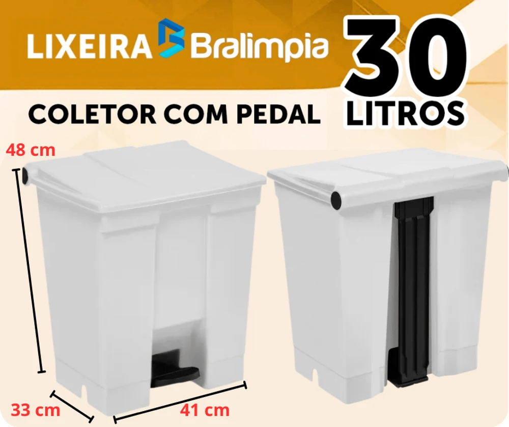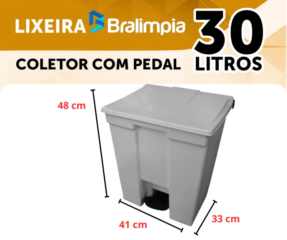 Lixeira Coletora De 30L Com Pedal Bralimpia