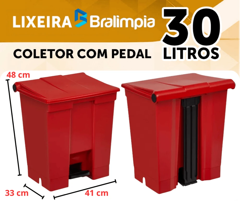Lixeira Coletora De 30L Com Pedal Bralimpia