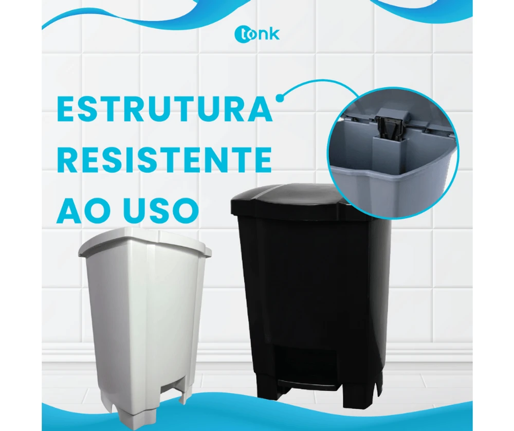 - Durabilidade Superior: Produzida em polipropileno de alta resistência, nossa lixeira é feita para durar, evitando a necessidade de trocas frequentes.