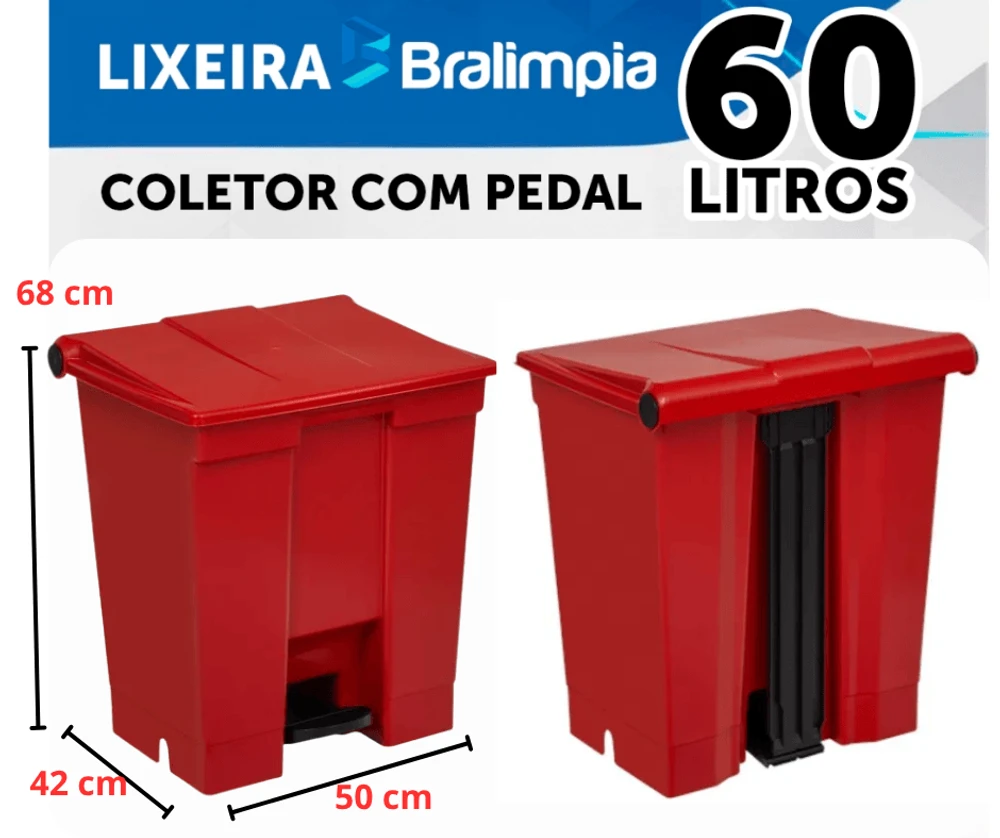 Lixeira Coletora De 60L Com Pedal Bralimpia