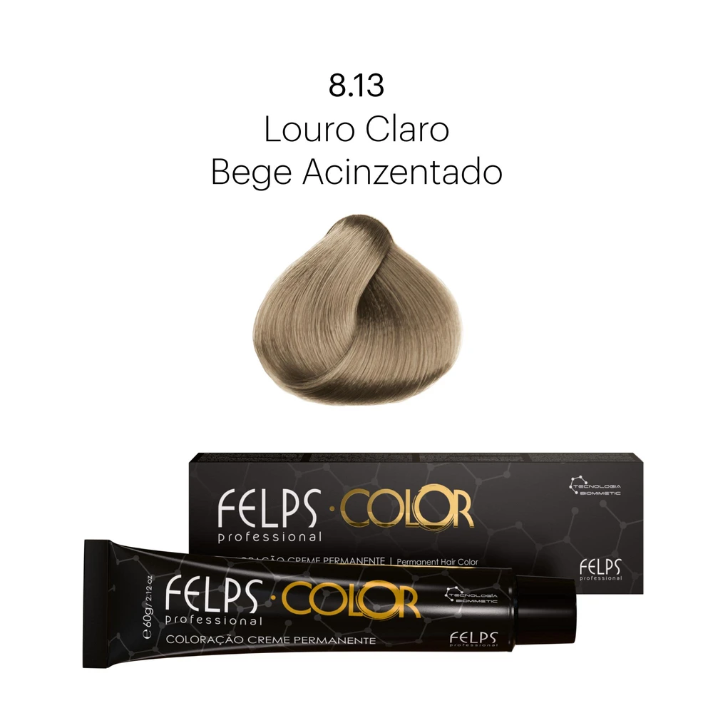 Coloração Profissional Felps Color Louro Claro Bege Acinzentado 8.13 - 60g