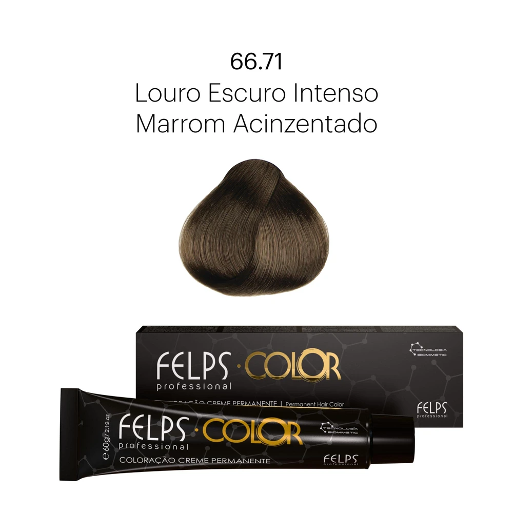 Coloração Profissional Felps Color Louro Escuro Intenso Marrom Acinzentado 66.71 - 60g