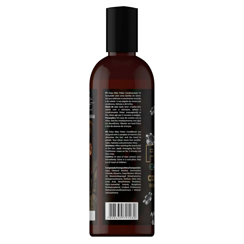 Felps Men Poker Condicionador foi formulado com uma bomba de vitaminas que estimula o crescimento da barba e do cabelo. A sua jogada de mestre que condiciona, hidrata e dá brilho.