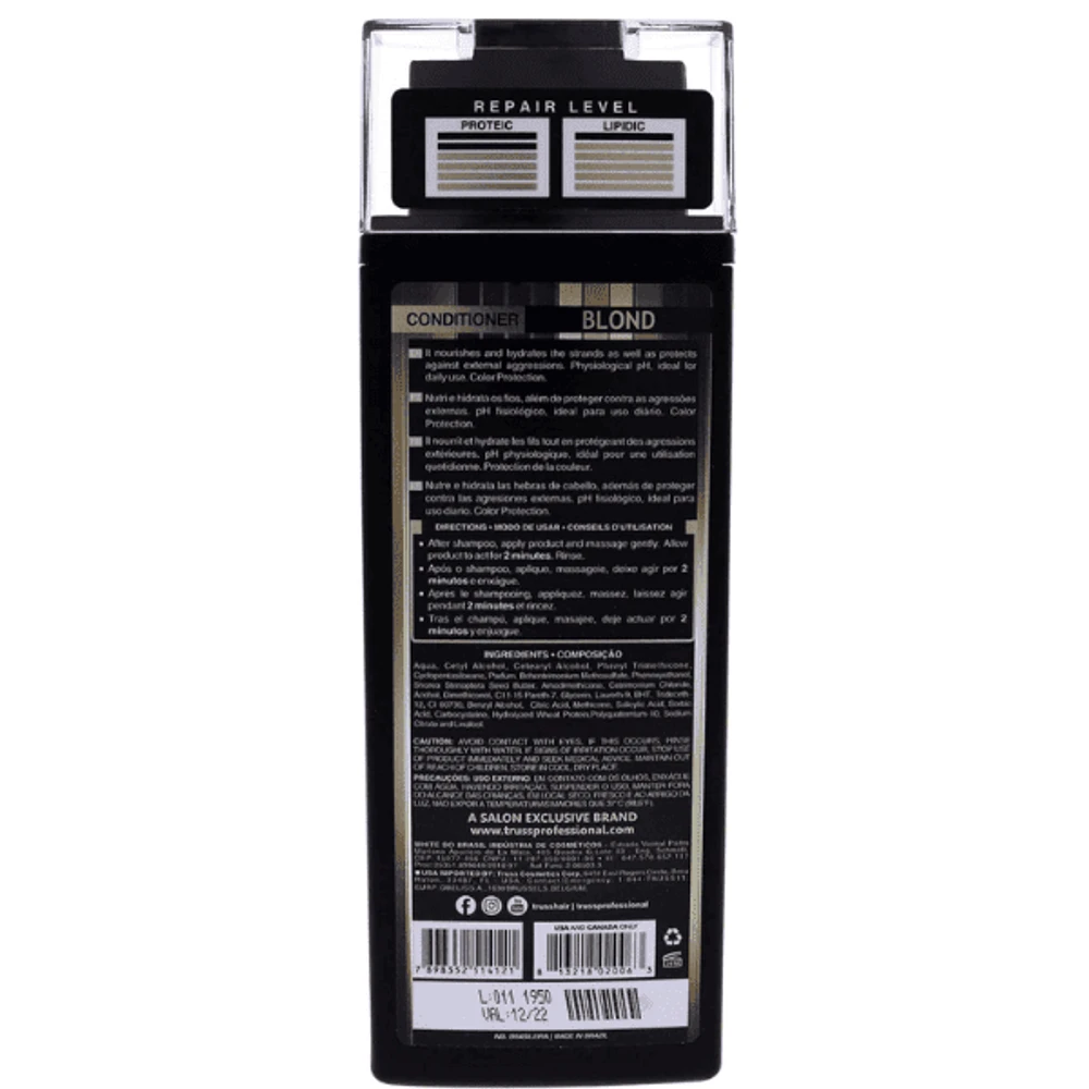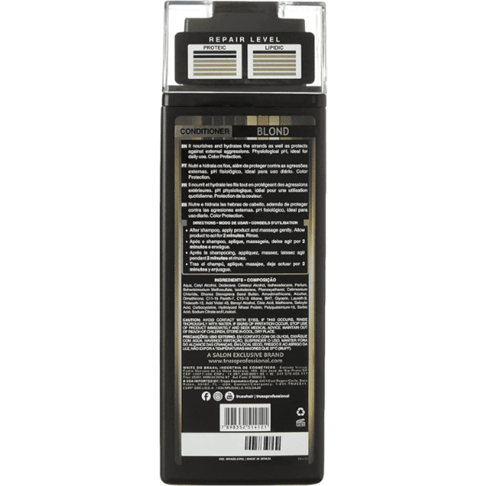 O Condicionador Truss Blond é ideal para cabelos loiros, descoloridos ou grisalhos que precisam de cuidado intensivo. Sua fórmula condiciona profundamente os fios, ajudando a neutralizar tons amarelados e realçando a cor com luminosidade e brilho saudável. Rico em ativos hidratantes e nutritivos, recupera a maciez, sela as cutículas e fortalece a fibra capilar, deixando o cabelo mais resistente, alinhado e sedoso ao toque.