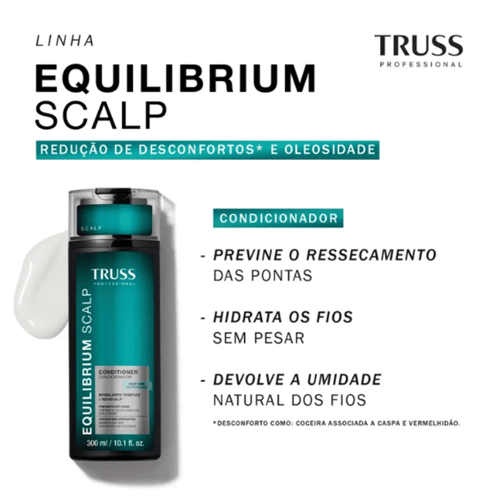 Hidratação equilibrada e controle da oleosidade na medida certa. O Condicionador Equilibrium Scalp da Truss foi formulado para complementar a ação do shampoo da linha, promovendo maciez e nutrição suave sem pesar nos fios — ideal para quem tem a raiz oleosa e comprimento ressecado.