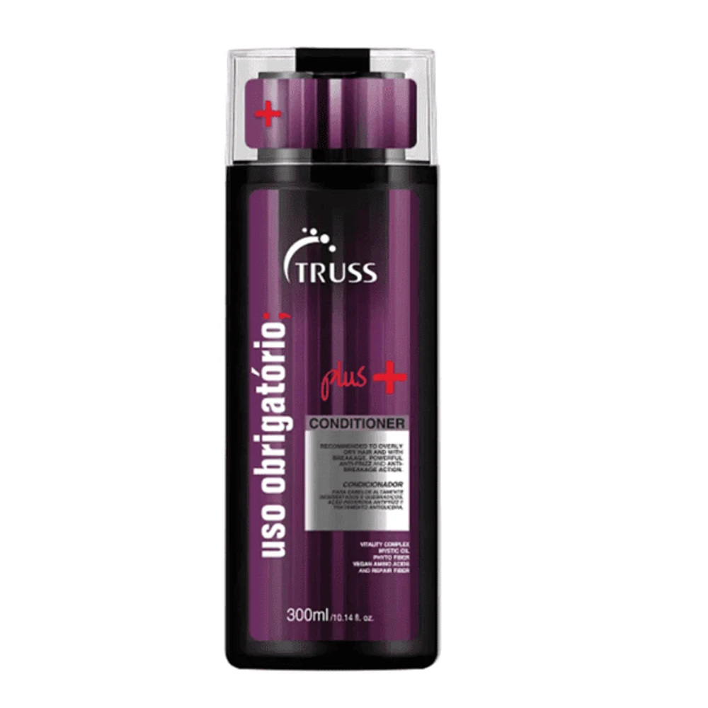 Transforme a saúde dos seus fios com o Condicionador Truss Uso Obrigatório Plus e sinta a diferença de cabelos mais fortes, hidratados e radiantes.