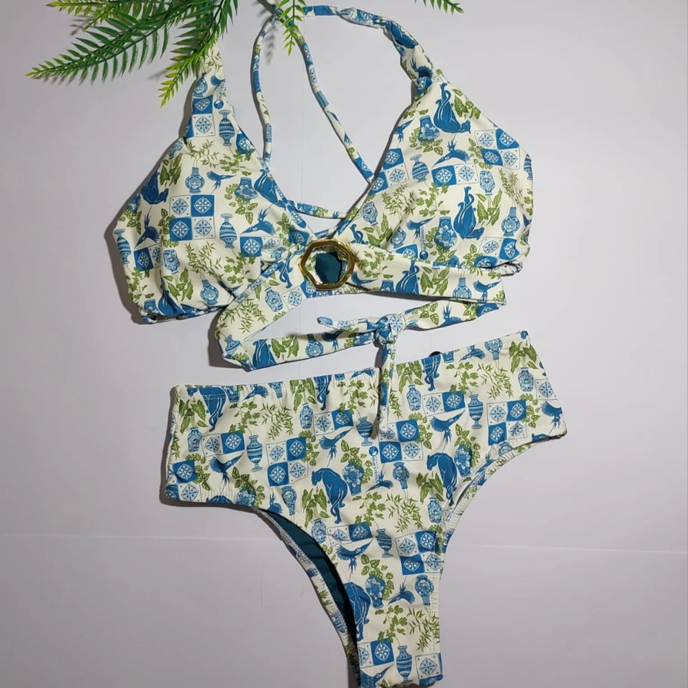 Um conjunto biquíni com estilo distintivo, conforto e um toque sofisticado graças à cintura alta e fivela, perfeito para quem busca um visual charmoso e elegante na água!