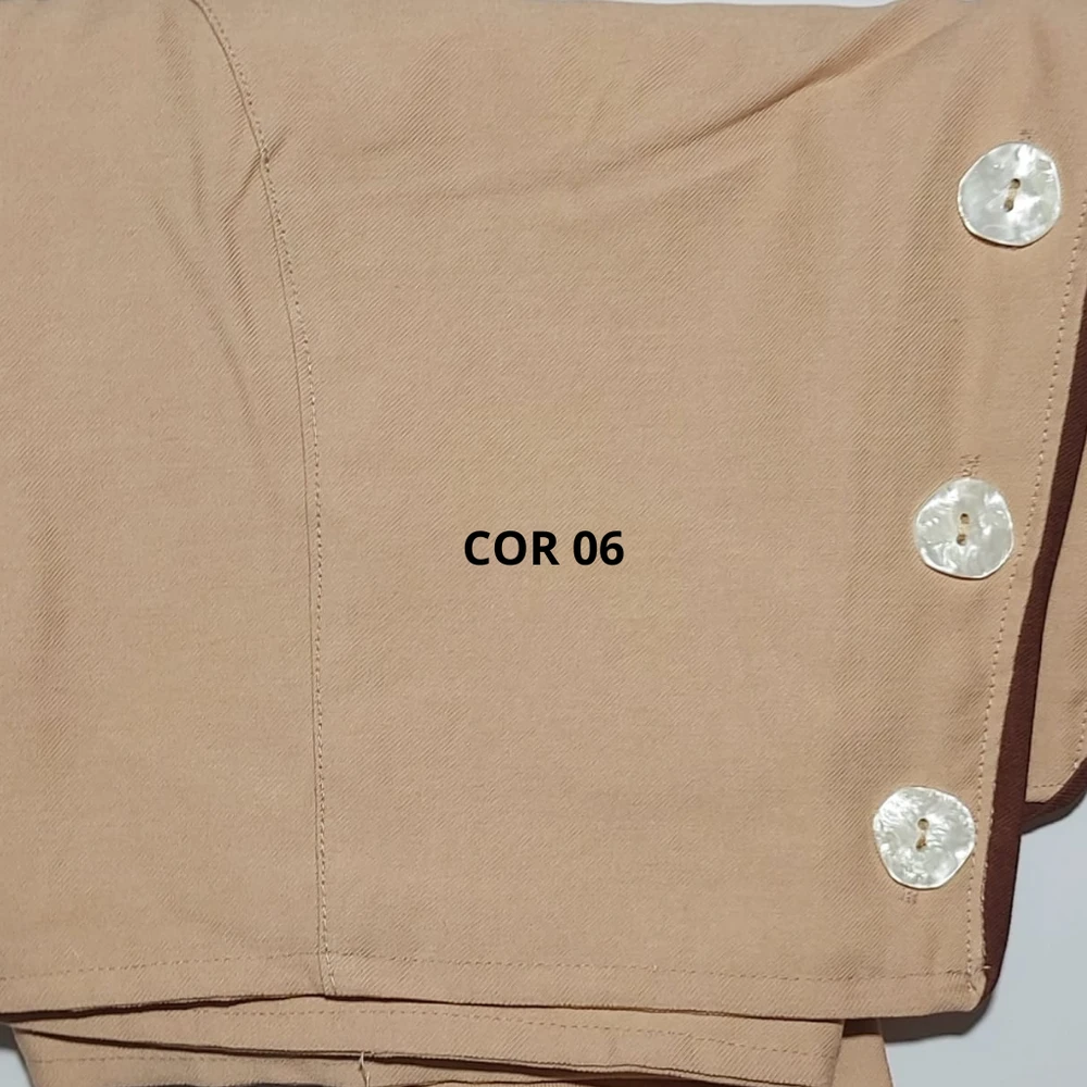 - Viscose: Fibra que proporciona conforto, maciez e boa caída, contribuindo para um visual elegante e fluido.