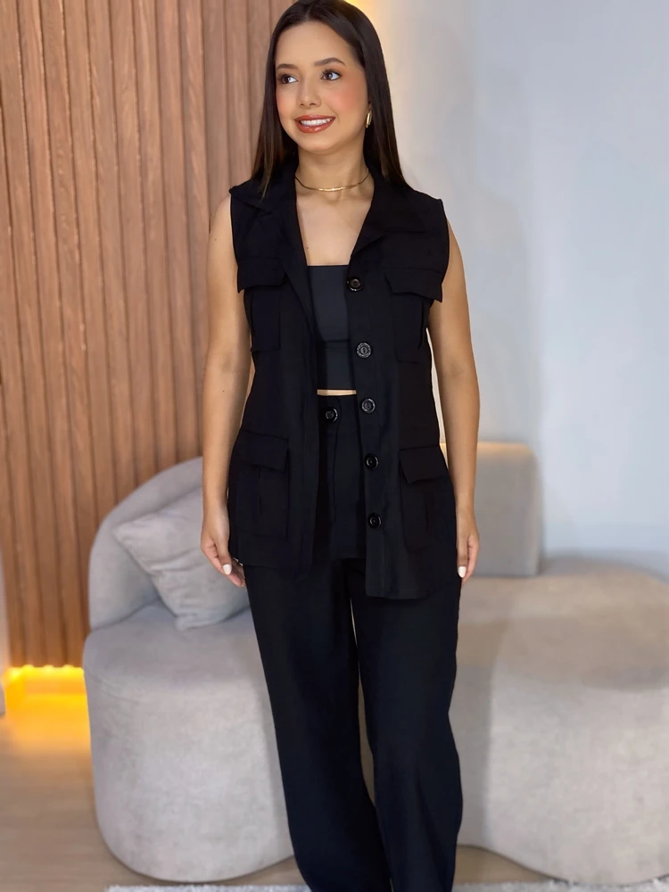 Conjunto Alfaiataria - Calça Pantalona e Max Colete
