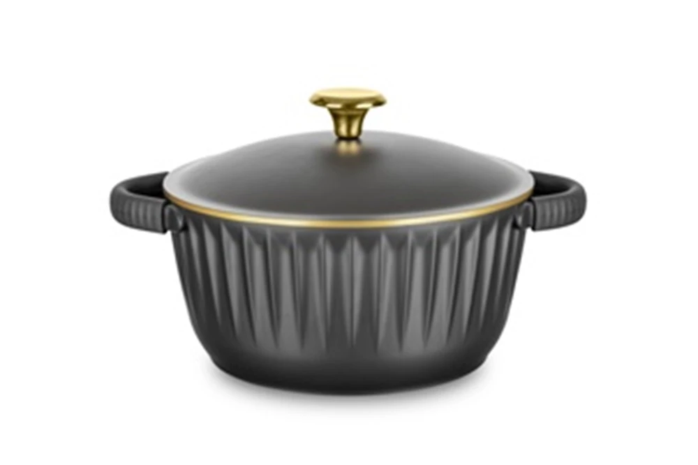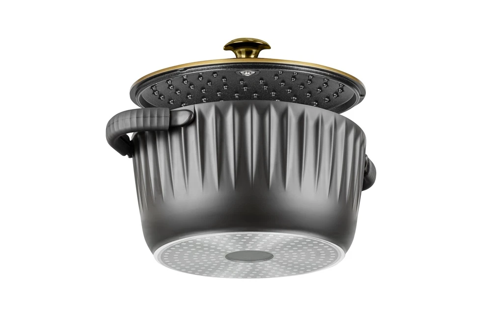 O revestimento cerâmico de alta qualidade confere durabilidade e sofisticação ao conjunto. As tampas em alumínio, com tonalidades suaves, adicionam um toque de charme. Os cabos, desenvolvidos com a inovadora tecnologia Soft-touch, não esquentam, proporcionando um toque macio e confortável durante o manuseio.
