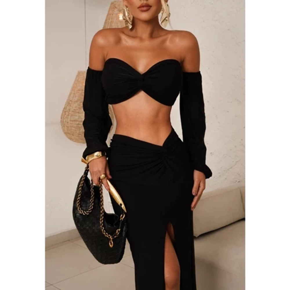 Conjunto Cropped e Saia Longa Festa Praia Tropical Suplex Premium Elastano Sensual Elegante Sofisticado Confortável NX D663