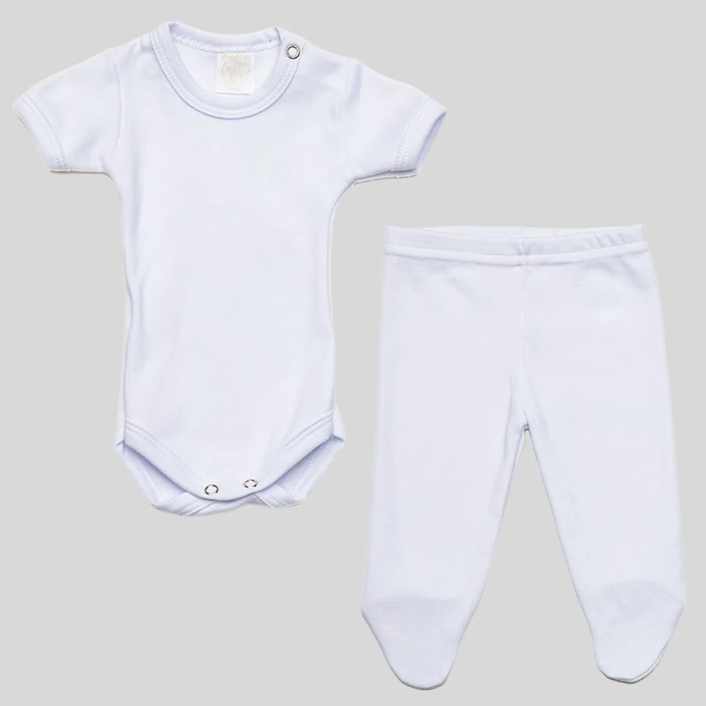 Conjunto de body manga curta prematuro em suedine algodão egípcio Branco