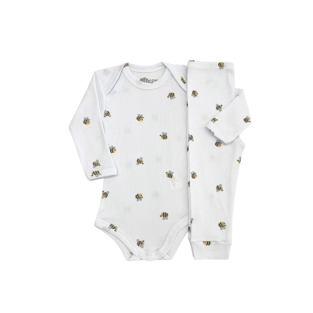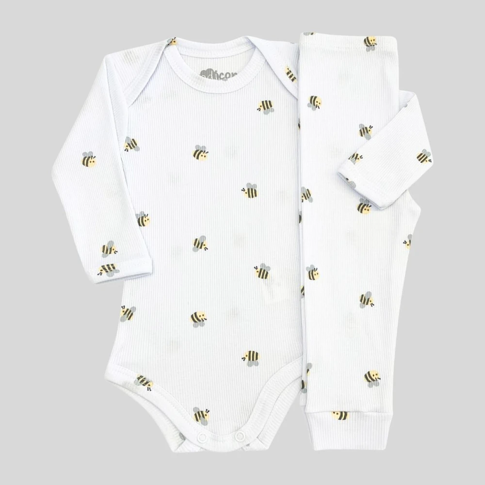 Conjunto de body manga longa para bebê prematuro em em tecido canelado estampa abelha