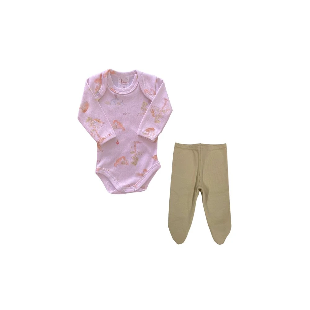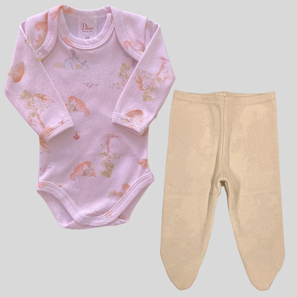 Conjunto de body manga longa para bebê prematuro em suedine algodão egípcio estampa bosque Rosa