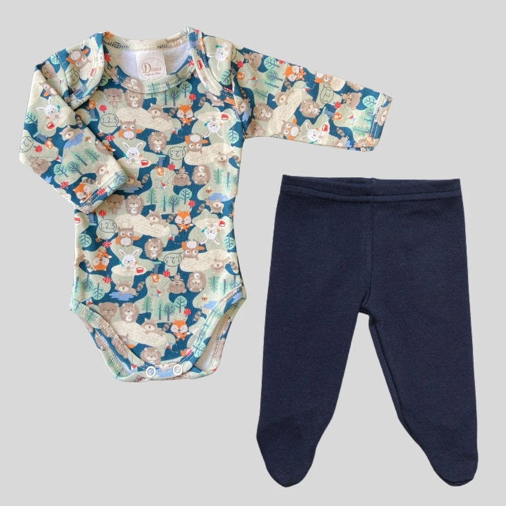 Conjunto de body manga longa para bebê prematuro em algodão egípcio estampa brincadeiras Azul Escuro