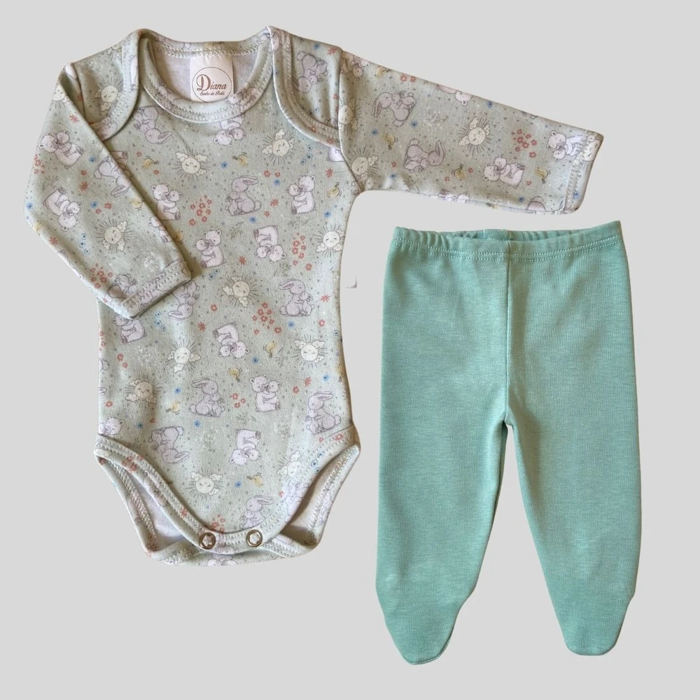 Conjunto de body manga longa para bebê prematuro em suedine algodão egípcio estampa coelhos Verde