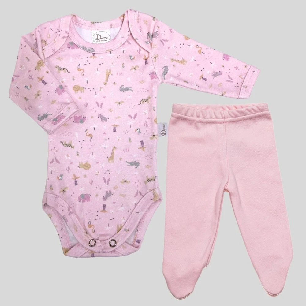 Conjunto de body manga longa prematuro em suedine algodão egípcio estampa safari Rosa