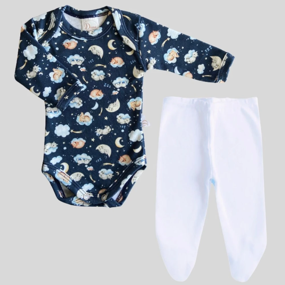Conjunto de body manga longa para bebê prematuro em suedine algodão egípcio estampa soninho Azul Marinho