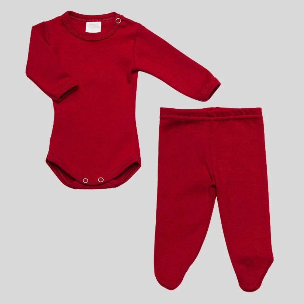 Conjunto de body manga longa prematuro em algodão egípcio Vermelho