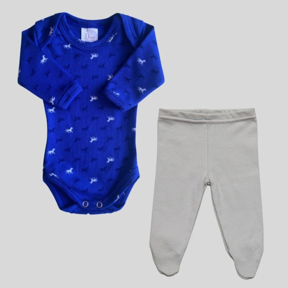 Conjunto de body manga longa prematuro em suedine algodão egípcio estampa cavalo Azul