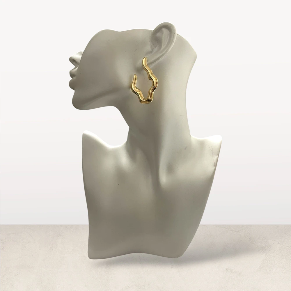 O Conjunto de Colar e Brincos Ondulados da Kabala Stores é a definição de modernidade e sofisticação orgânica. Este conjunto apresenta um design abstrato com linhas fluidas e sinuosas que remetem ao movimento das chamas ou das ondas, criando uma estética de "statement piece" que não passa despercebida. A gargantilha no estilo choker rígido (aro) proporciona um caimento estruturado e elegante, enquanto os brincos coordenados emolduram o rosto com um brilho metálico contemporâneo, sendo perfeito para quem busca acessórios que expressam personalidade e luxo.