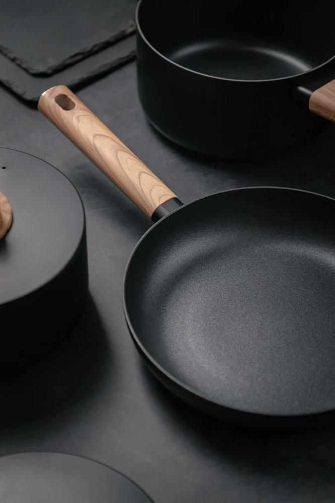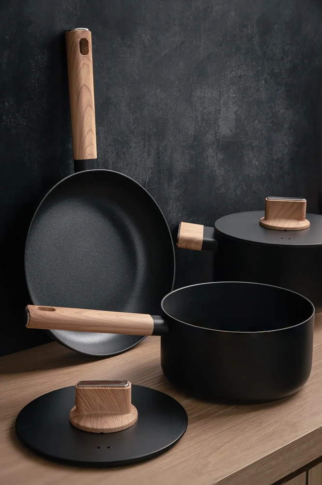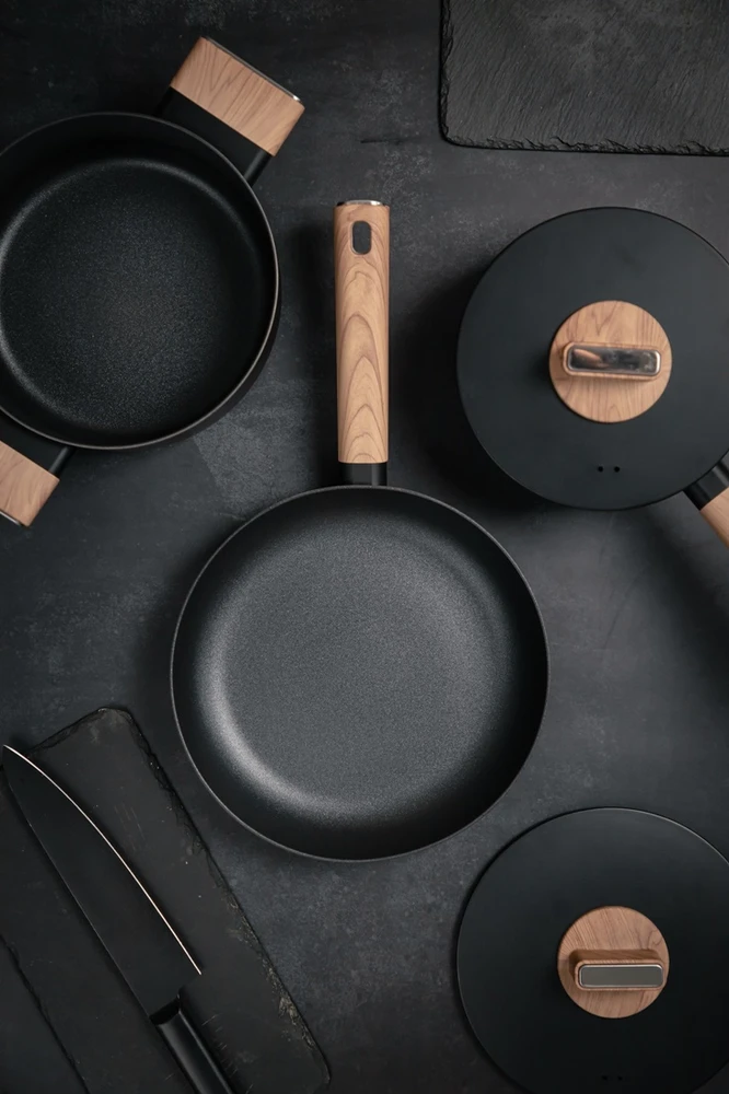 A Linha Concept Wood não se limita apenas ao seu design encantador; ela é uma combinação perfeita de forma e função. O alumínio forjado garante robustez, enquanto o revestimento Cerâmico-flon de 3,3 mm oferece uma experiência culinária excepcional.