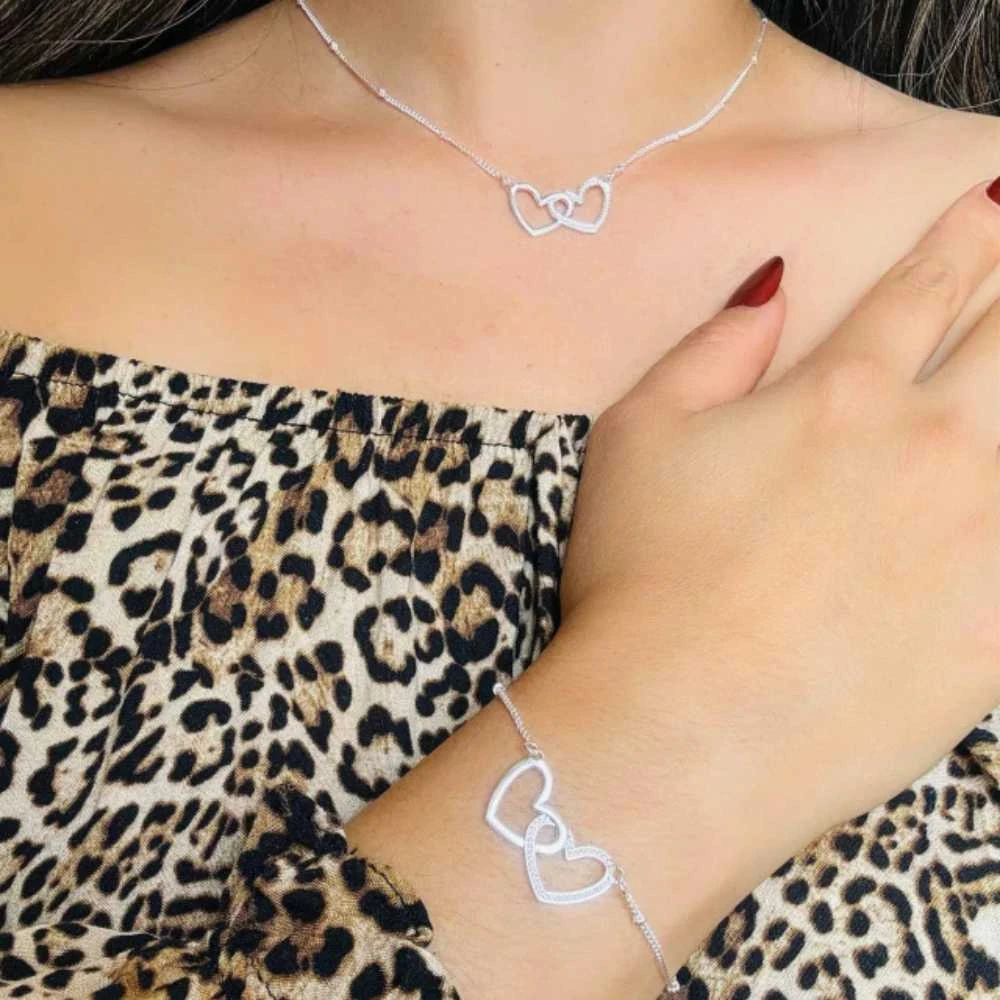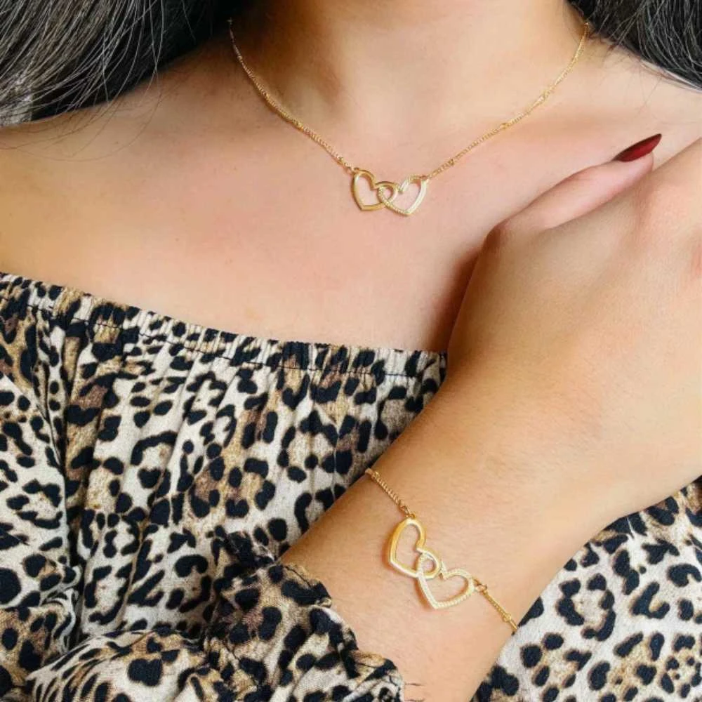 Colar: 42 cm + 3,0 cm de extensor Corações: 2,5 cm largura e 1,2 cm de altura