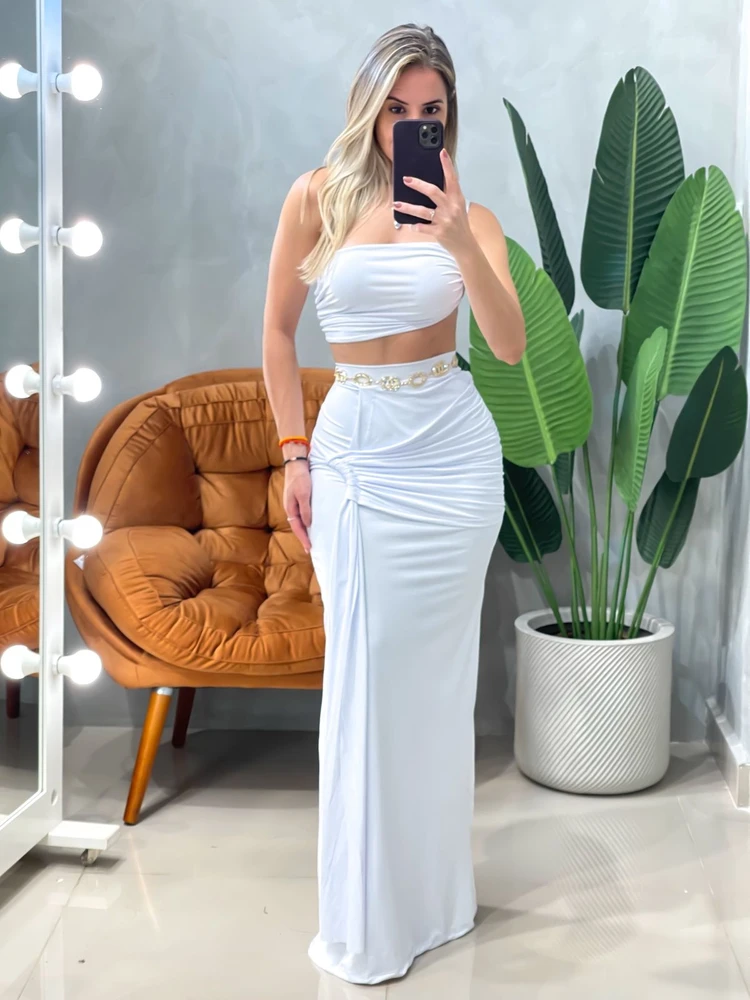 Descubra o Conjunto em Poliamida Cropped Alça Única Franzido e Saia Longa Transpassada Leon, a escolha perfeita para quem busca estilo, conforto e sofisticação. Confeccionado em poliamida de alta qualidade, este conjunto valoriza o corpo com seu design moderno e ajustável, ideal para ocasiões especiais ou um look casual chic. O cropped de alça única com franzidos realça a feminilidade, enquanto a saia longa transpassada proporciona movimento e elegância.
