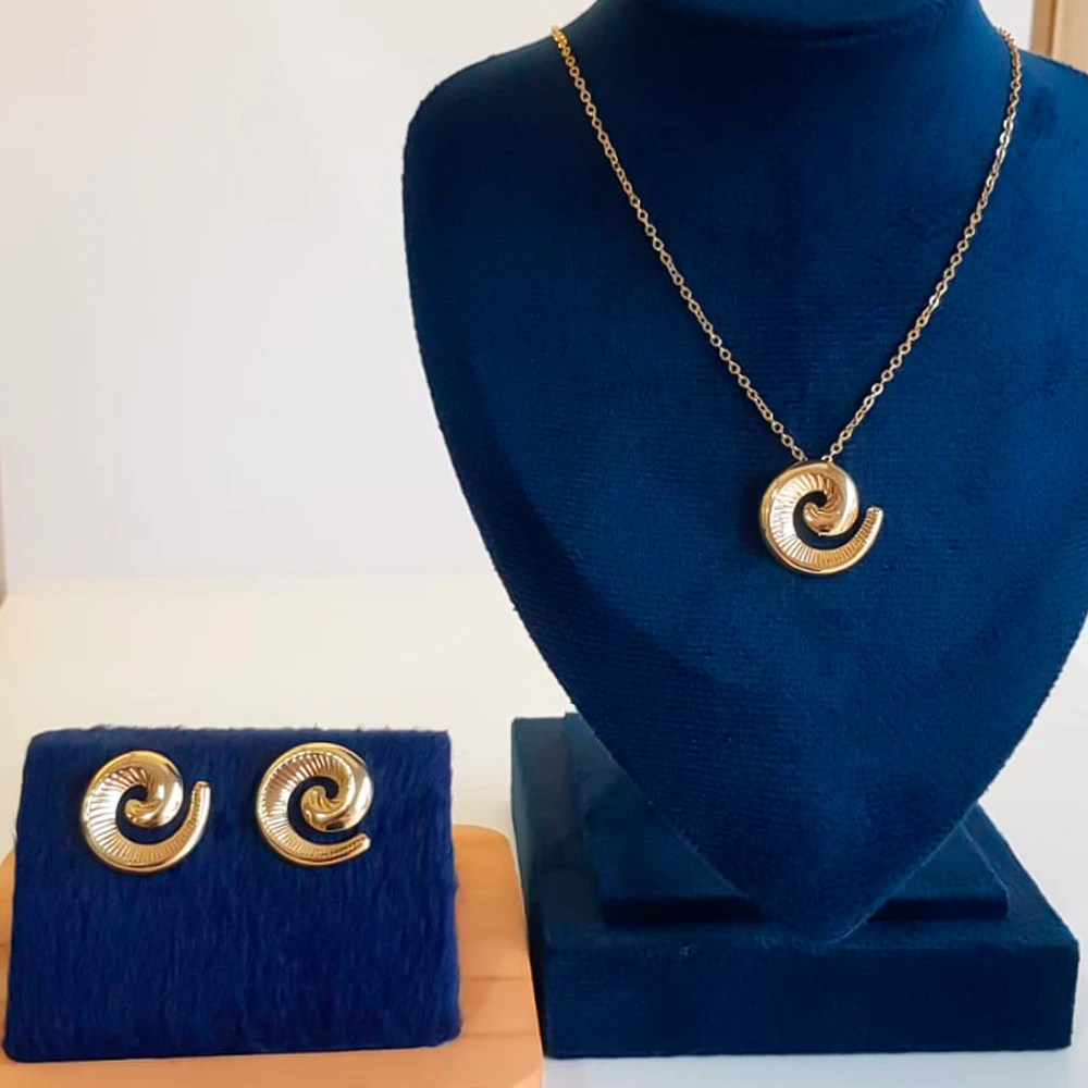 Descubra a elegância do Conjunto Espiral Banhado a Ouro 18K, ideal para quem busca sofisticação e modernidade em acessórios. Este conjunto exclusivo combina colar e brincos com design em espiral, trazendo um toque de originalidade e charme para qualquer ocasião. O banho em ouro 18K garante brilho intenso e alta durabilidade, valorizando seu estilo com um acabamento premium.