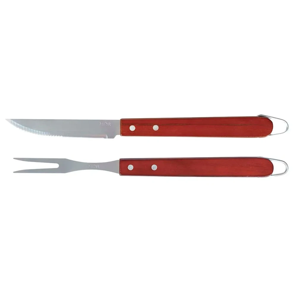 Produzido em aço inoxidável e cabos em madeira prolongados, o Conjunto Faca e Garfo Trinchante da Mor é o que você precisava para o seu churrasco, servir seus convidados e sua família com comodidade e elegância. Possuem alças na extremidade possibilitando ser pendurados na sua cozinha ou junto à churrasqueira. Praticidade que só a Mor tem para facilitar a sua vida!