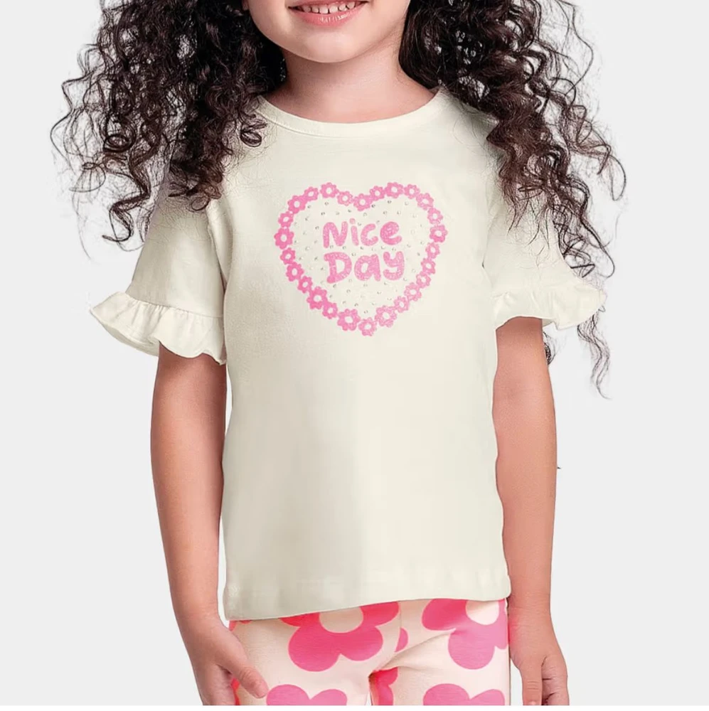 Descubra o Conjunto Fakini Blusa Legging, perfeito para meninas que adoram conforto e estilo em todos os momentos. Com tamanhos 1, 2 e 3, este conjunto infantil traz uma blusa off-white com estampa delicada "Nice Day" em rosa, complementada por uma legging estampada com flores vibrantes, garantindo um visual alegre e divertido.
